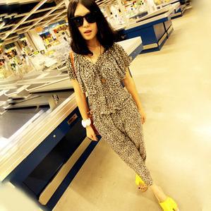豹紋顏色也很正。松緊腰帶穿,小腳哈倫褲,隨意大方