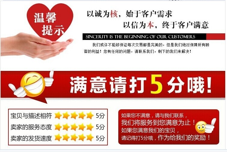 4、購物之前對商品有任何疑問,敬請先咨詢客服,直至了解該商品,以免引起不必要的誤會!
