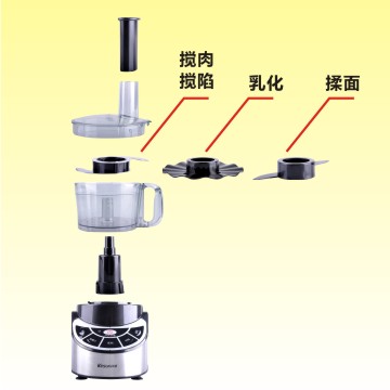 1200ml超大加工杯,采用食品級材料制作,使用堅固、耐用、衛生,適合攪肉、攪餡、揉面粉等;