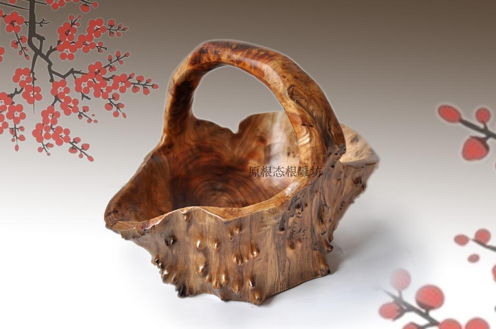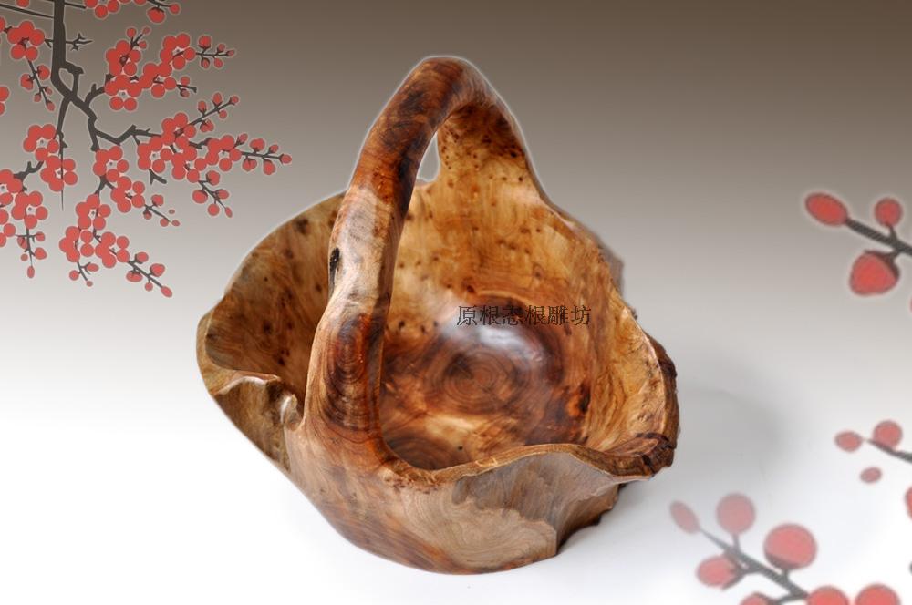 名稱:手提根雕籃、手提花籃、果籃、 木根杯洗