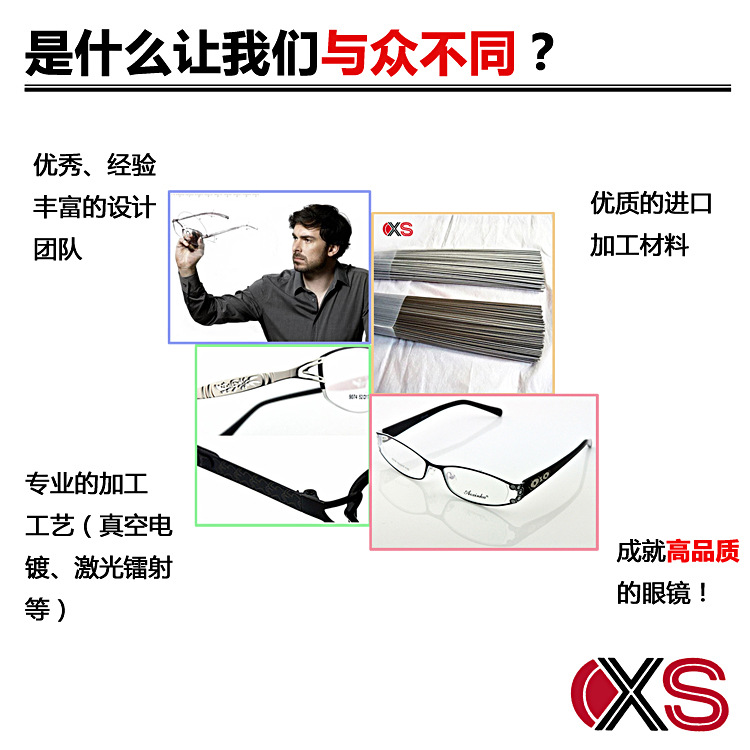 鑫盛眼鏡廠是溫州地區(qū)知名精品金屬光學(xué)眼鏡廠家,并與多家品牌商合作,進(jìn)行正規(guī)授權(quán)的眼鏡代工生產(chǎn)。本廠致力于為各位批發(fā)商,零售商提供優(yōu)質(zhì)近視眼鏡貨源。