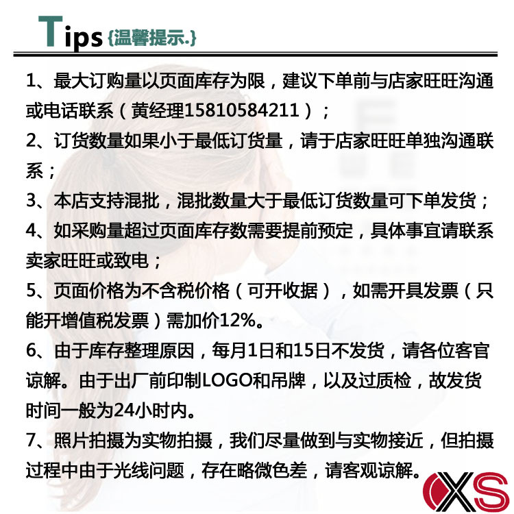非質(zhì)量問題概不退還。(我廠均是出廠貼牌,因此您的貿(mào)然退貨,會讓工廠損失人工費用,因此,請客官細(xì)心選款。當(dāng)然如若是質(zhì)量問題,我方會負(fù)責(zé)到底)