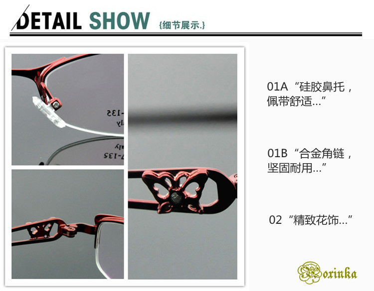 鏡架鮮明的輪廓及前衛(wèi)的設(shè)計吸引了大眾的眼光,同時也拉近了年輕人與時尚的距離。此款為女款性設(shè)計,簡潔大方,彰顯東方知性美。合金框架(均采用不銹鋼,白銅材料,結(jié)實耐用),結(jié)實牢固,先進(jìn)工藝著色。年輕時尚,彰顯青春風(fēng)采!