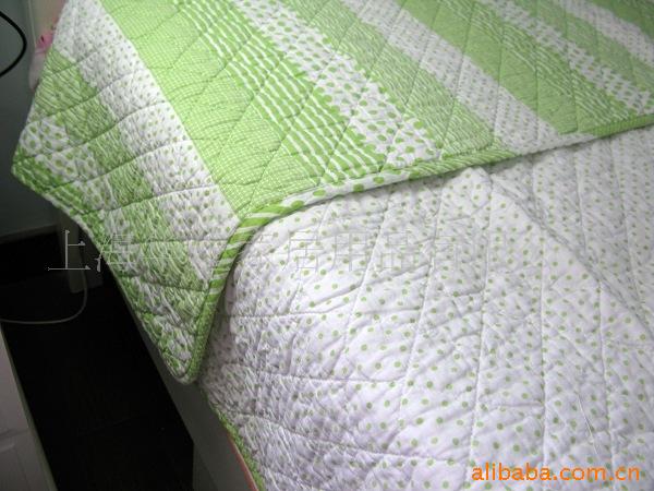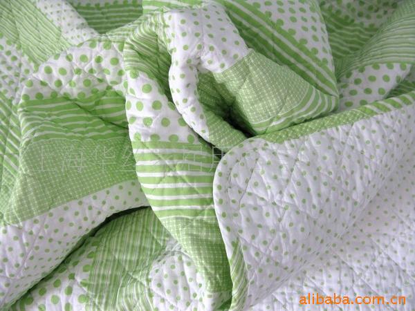 [產品說明]電腦繡花密絎縫、工藝被靚點:被面平整,不起褶皺.絎縫之間間隔小,被面被絎縫打成細格,絎縫間的空隙又保證了面子的透氣保暖性,同時比較有手感。沒有被套被子芯之分,絎縫/水洗被子的芯和被面是通過手絎或電腦機絎結合在一起的,無法分開。不然也就不是"絎縫"產品了,方便清洗,直接放到洗衣機里面就可以清洗。早上起來不再用疊被子了,直接鋪床上的效果非常漂亮,頗有貴族田園風格,讓整個房間顯得格外整潔。質量好,填充棉是100%的純棉,不含任何纖維物質,出口歐洲的產品,采用的印花染料都是完全符合歐洲標準的。在出廠前做過水洗砂洗烘干程序,這個是為了使被子柔軟,耐用,用后不起球,洗滌時不會出現棉花打結,等等。這些程序是質量的保證。