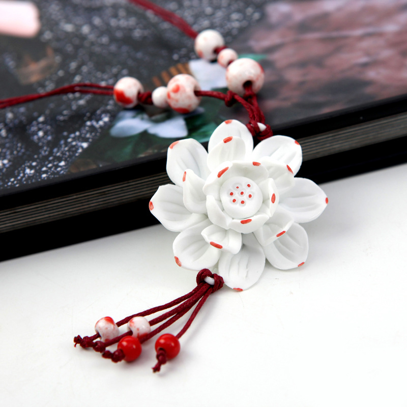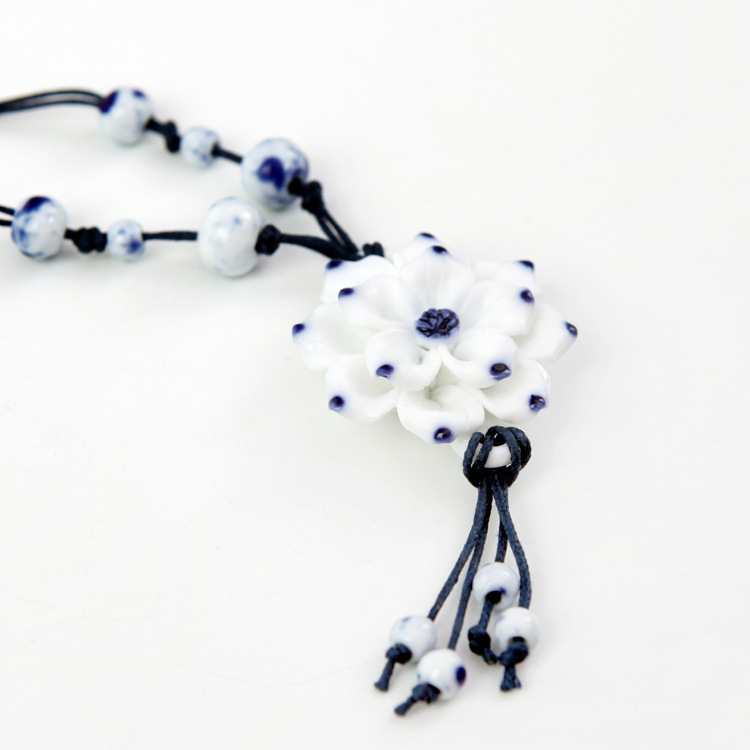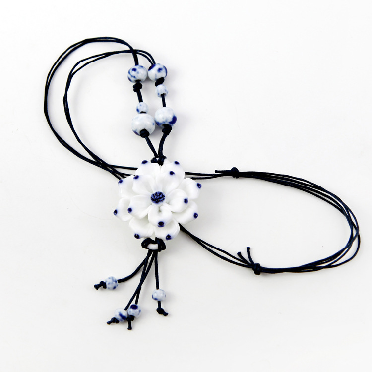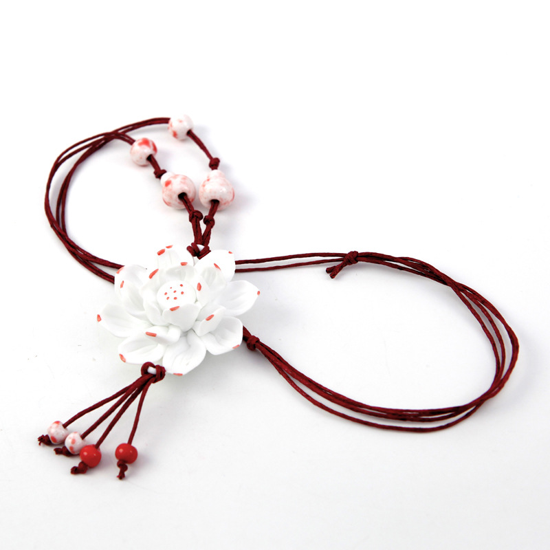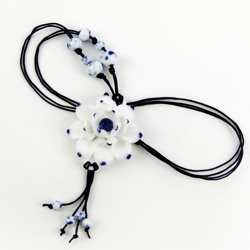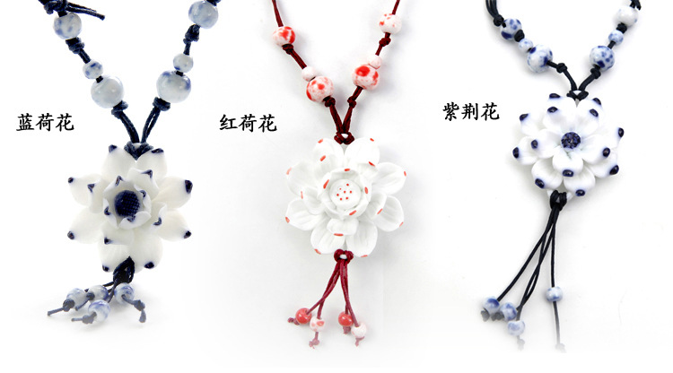 景德鎮(zhèn)陶瓷首飾陶瓷飾品 手捏陶瓷花朵 陶瓷吊墜項(xiàng)鏈 服飾毛衣鏈