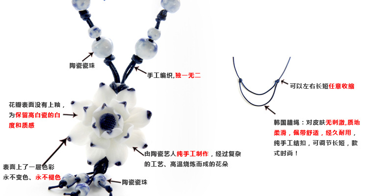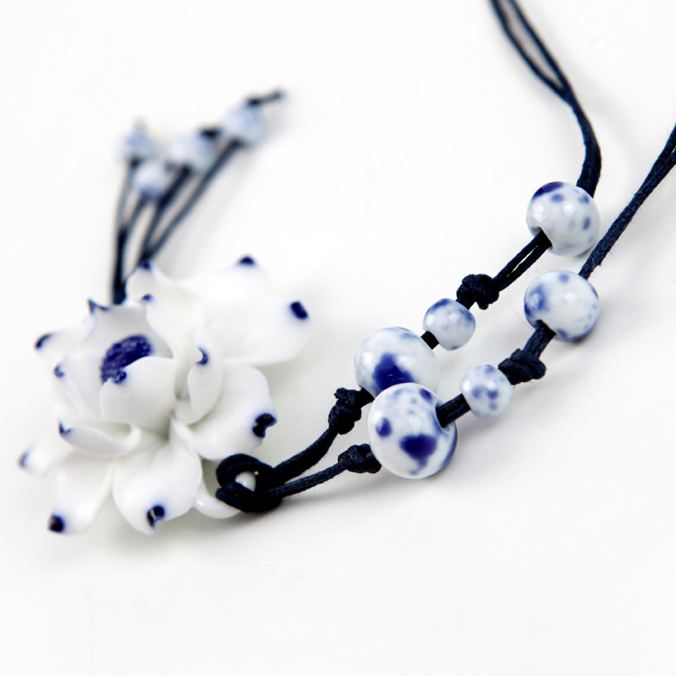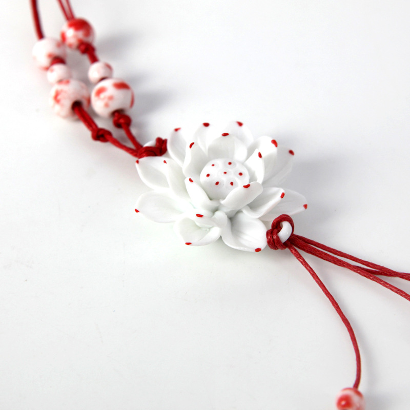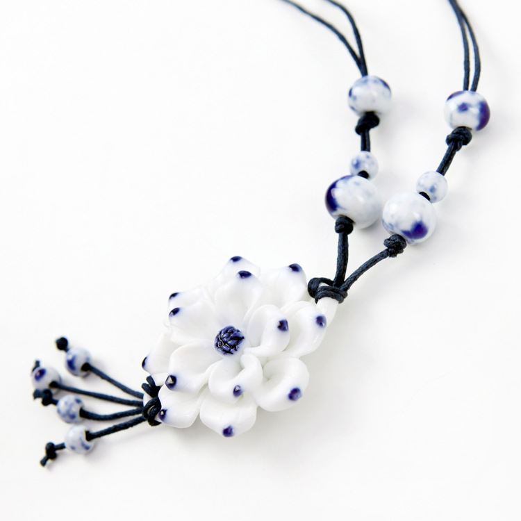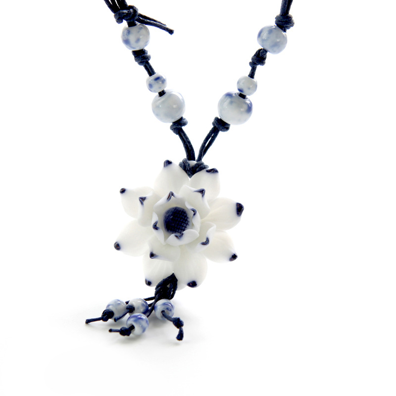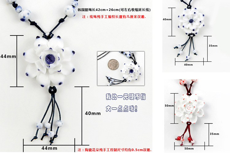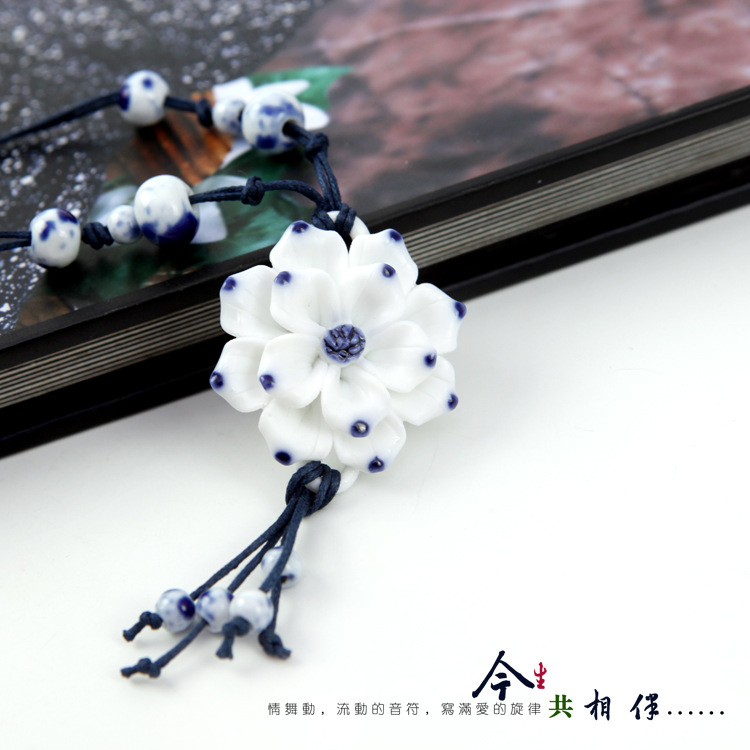 景德鎮(zhèn)陶瓷首飾陶瓷飾品 手捏陶瓷花朵 陶瓷吊墜項(xiàng)鏈 服飾毛衣鏈