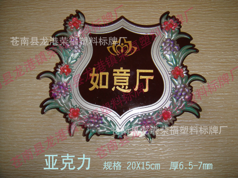 蒼南縣龍港榮福塑料標牌廠是一家專業從事雙色板、亞克力雕刻生產的商家,專業供應各類學校校徽、員工胸牌、胸章徽章,標志牌,ABS雙色板標志牌及酒店賓館門牌、指示牌類亞克力立體浮雕標志牌,等等。我們是實體廠家,所以產品品質保障和價格優惠!支持混批,歡迎來樣或圖案訂做。