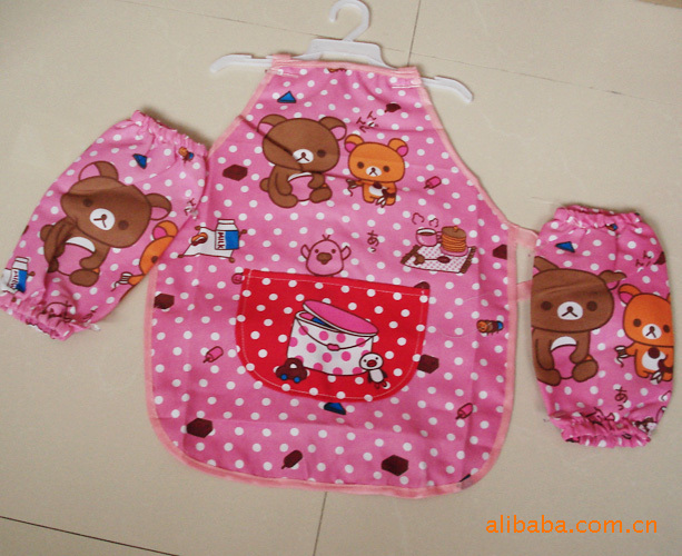 ※兒童防水圍裙,袖套兩件套---采用雙層面料,內層防水,防油,柔軟舒適。