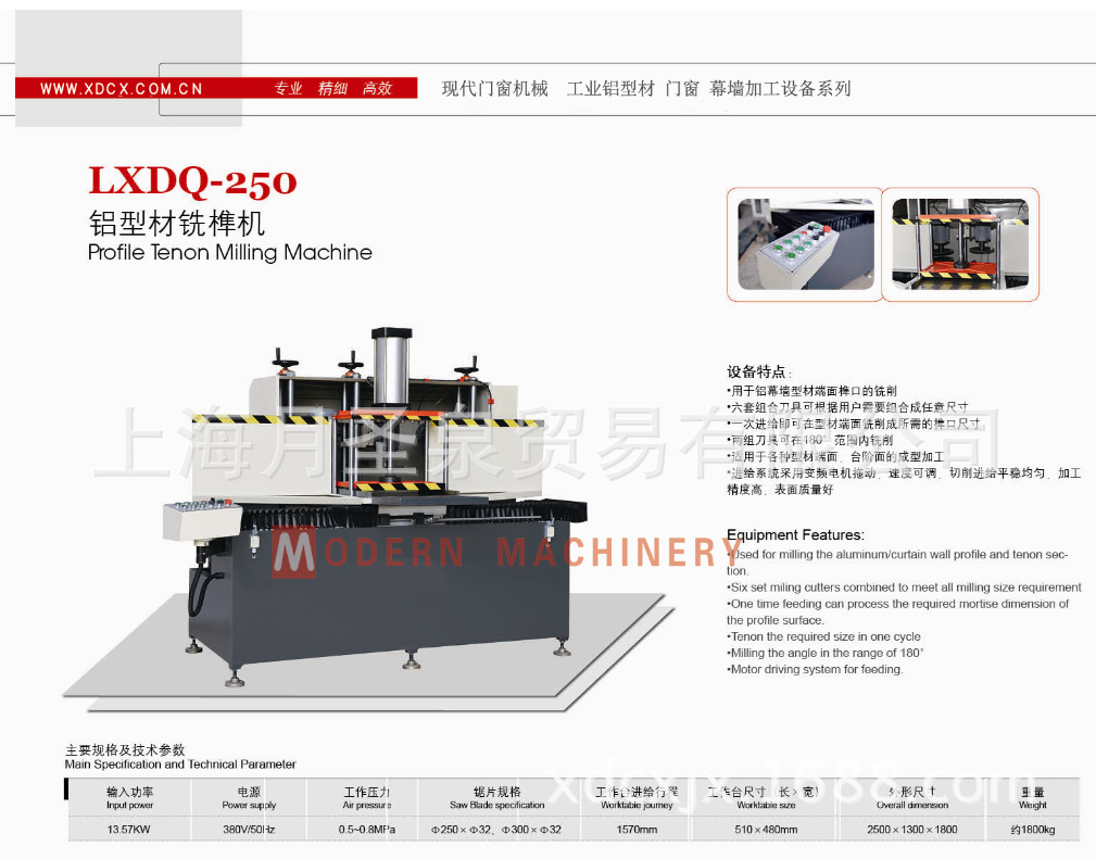用于中挺端面、臺階面及端面槽的成型加工及鋁幕墻型材的榫槽加工采用雙向快速定位、夾緊機構,便于實現自動化作業自動進給,勞動強度小