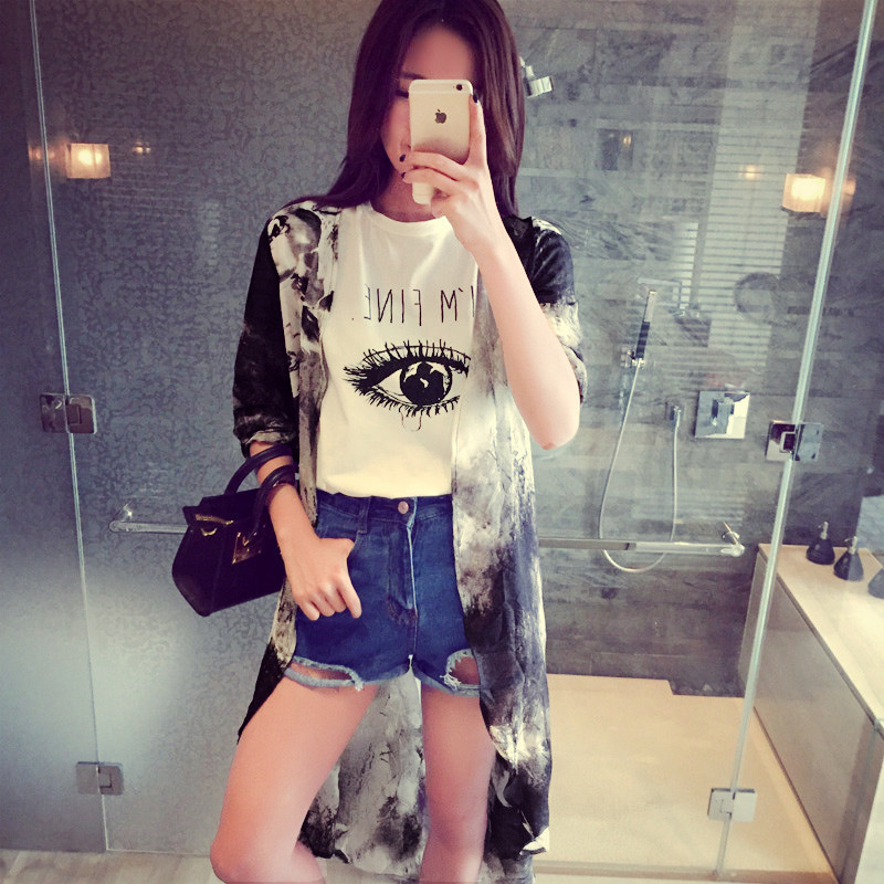 寶貝編號:水墨中長雪紡衫E4119關于面料:聚酯纖維顏色選擇:黑色號碼選擇:均碼