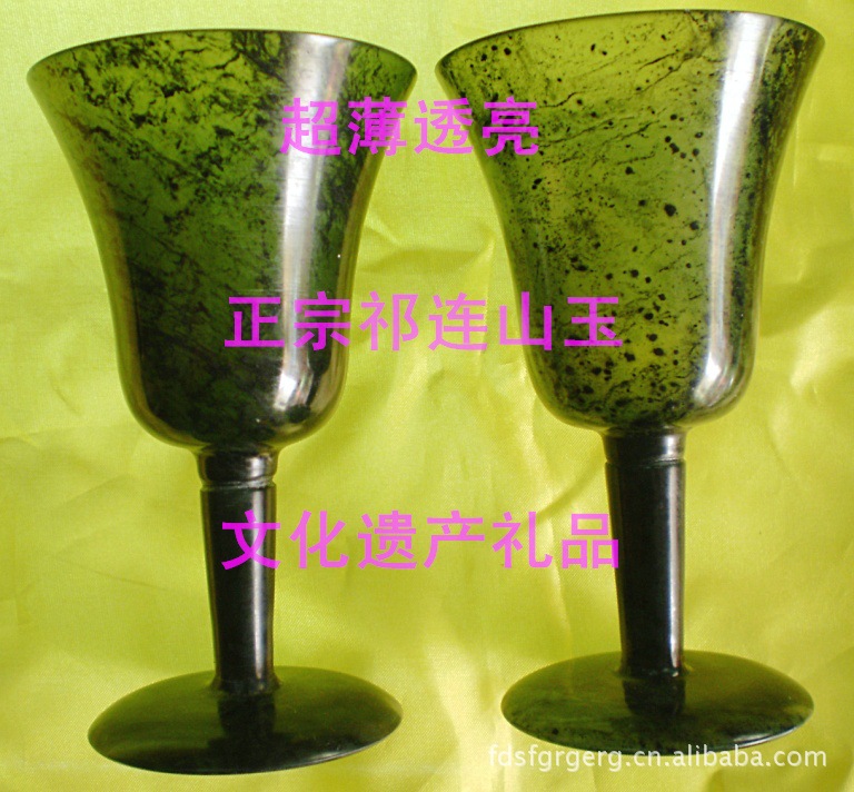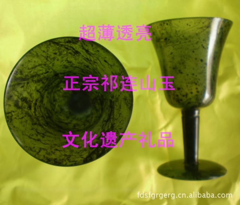 祁連山終年白雪皚皚,高遠神秘,凜然不可侵犯。制作夜光杯的祁連玉就來自海拔三四千米以上的祁連山上,玉呈墨綠色,制成杯盞,蒼翠欲滴,即使在炎炎夏日也讓人頓生冰涼之感。受交通限制,祁連玉的開采外運至今仍十分困難,供應到市場上的玉料非常有限;制作玉杯,玉料的利用率通常只有60%左右,因此夜光杯的產量很有限,珍貴自不必說。