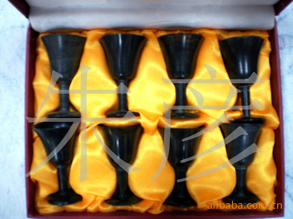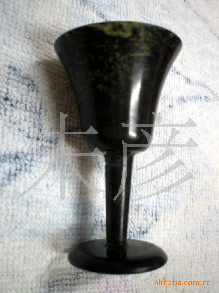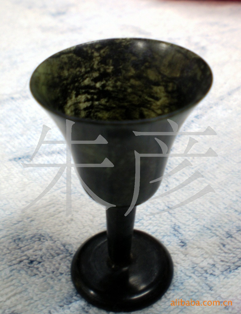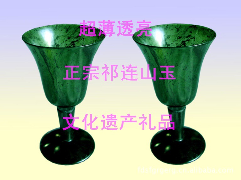 小高腳杯一套8個,帶盒。 敦煌夜光杯又名陽關玉杯,它以祁連山所產優質墨玉、黃玉和碧玉為原料,經過24道工序精雕細刻而成,之所以成為夜光杯是因為在黑暗的環境下它會發出淡淡的光,是很名貴的飲酒器皿。