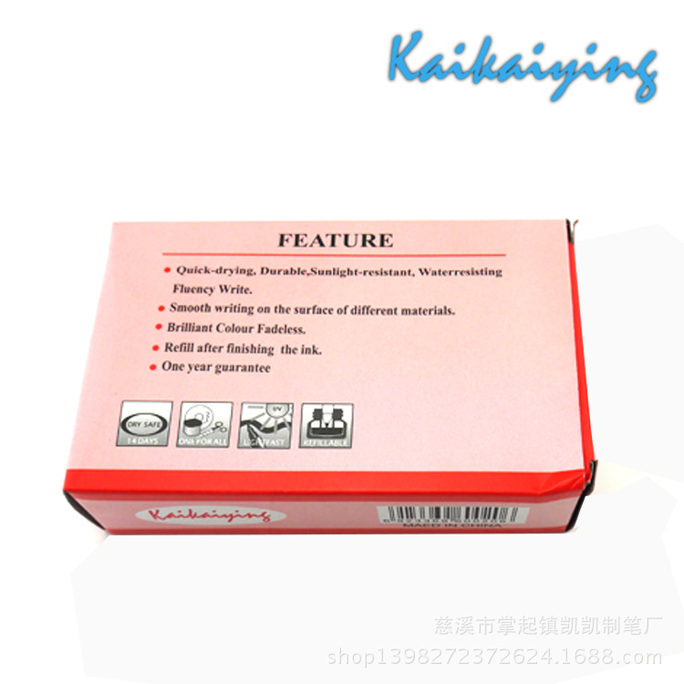 慈溪市掌起鎮凱凱制筆廠是記號筆、白板筆、記號筆等產品專業生產加工的公司,擁有完整、科學的質量管理體系。慈溪市掌起鎮凱凱制筆廠的誠信、實力和產品質量獲得業界的認可。歡迎各界朋友蒞臨參觀、指導和業務洽談。