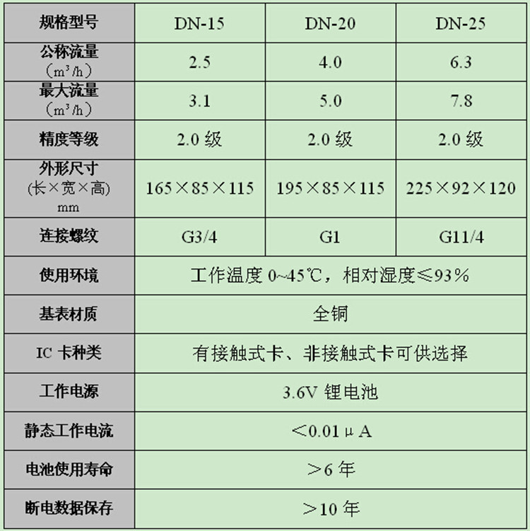 四分、六分、八分不銹鋼智能水表詳細參數
