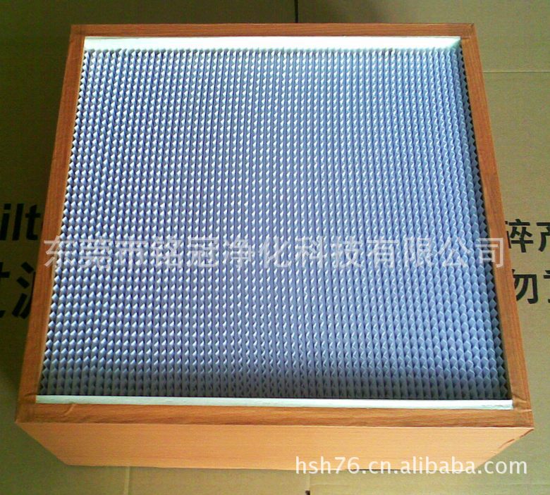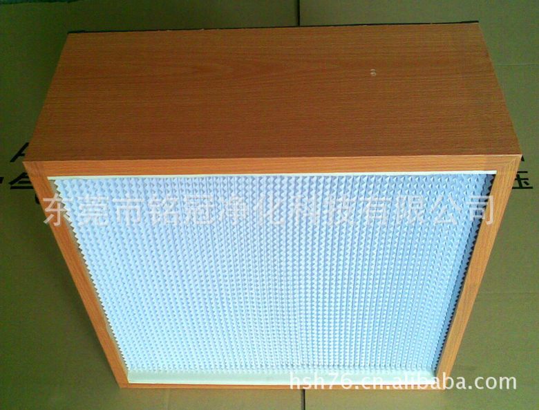 高效有隔板空氣過濾器 由外框+內折疊濾紙+隔紙,用專用密封膠密封而成外框有木框 鋁合金框 鍍鋅板框 不銹鋼板框 常用的都是木框較多,具有成本低價格便宜的優點。有隔板過濾器具有風量大,效率高,低阻力,容塵量大的特點,效率達99.99%。