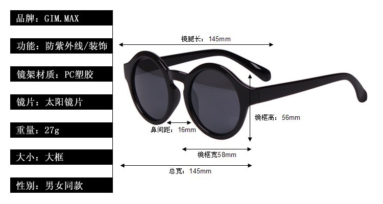 專業批發銷售凱倫沃克新款 圓形潮流男女太陽鏡 歐美街頭酷墨鏡