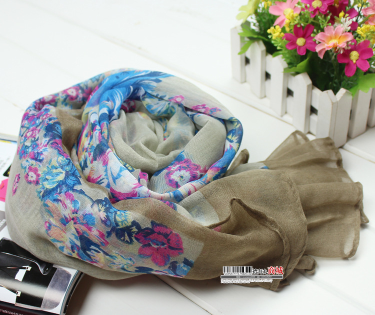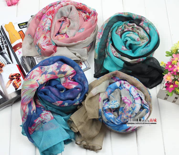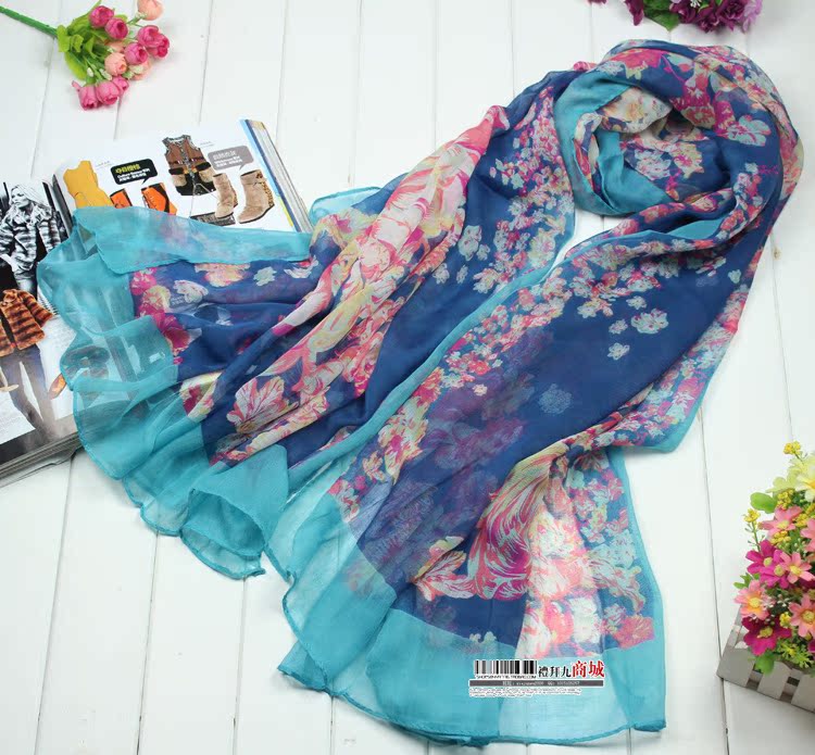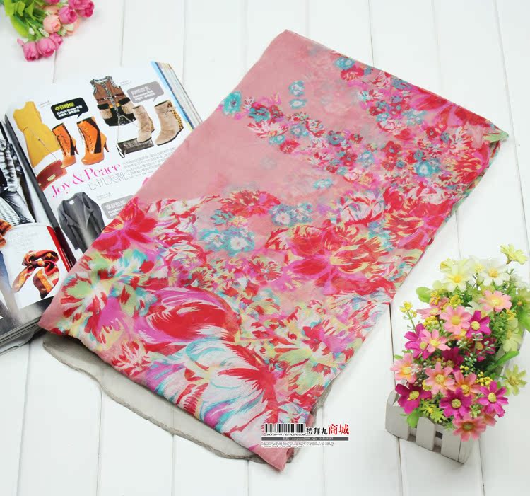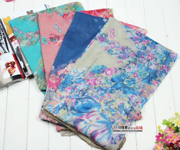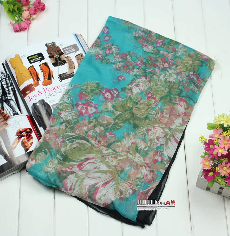 BLS136經典款巴厘紗圍巾 花卉圍巾 超長超大款