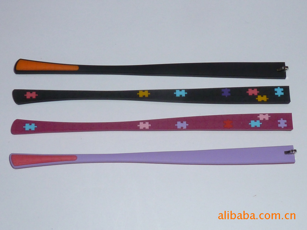 本廠研制出品,生產的多色仿硅膠眼鏡腳架(脾套)采用進口環保原材料生產,具有色彩豐富,佩戴舒適,外觀時尚,質量可靠等特點。本產品除我們現有各式圖案款式外,可以根據客戶的要求定制各種配合要求的時尚圖案,本產品與眼鏡框架(前圈)的完美結合將會限度提升您的成品眼鏡架的產品附加值。