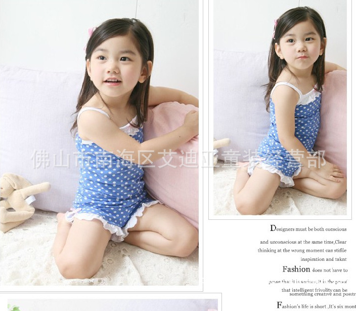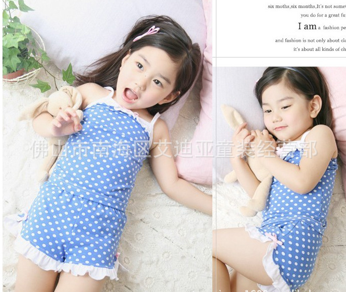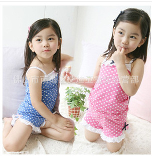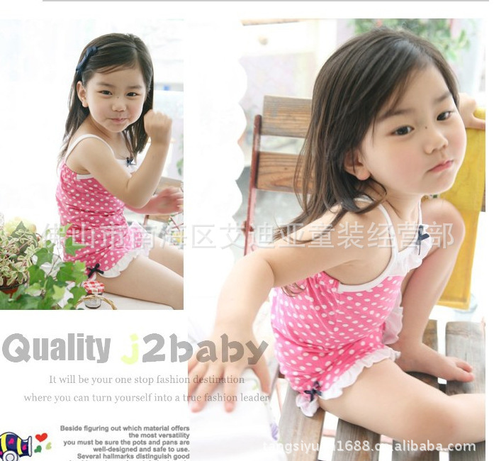 2012年夏款 女童裝寶寶套裝 蝴蝶結點點吊帶+短褲兩件套