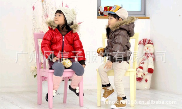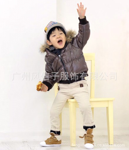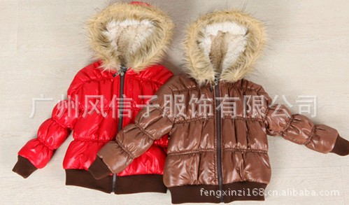 童裝批發網 童裝冬季時尚帶帽加厚毛毛棉衣 261321