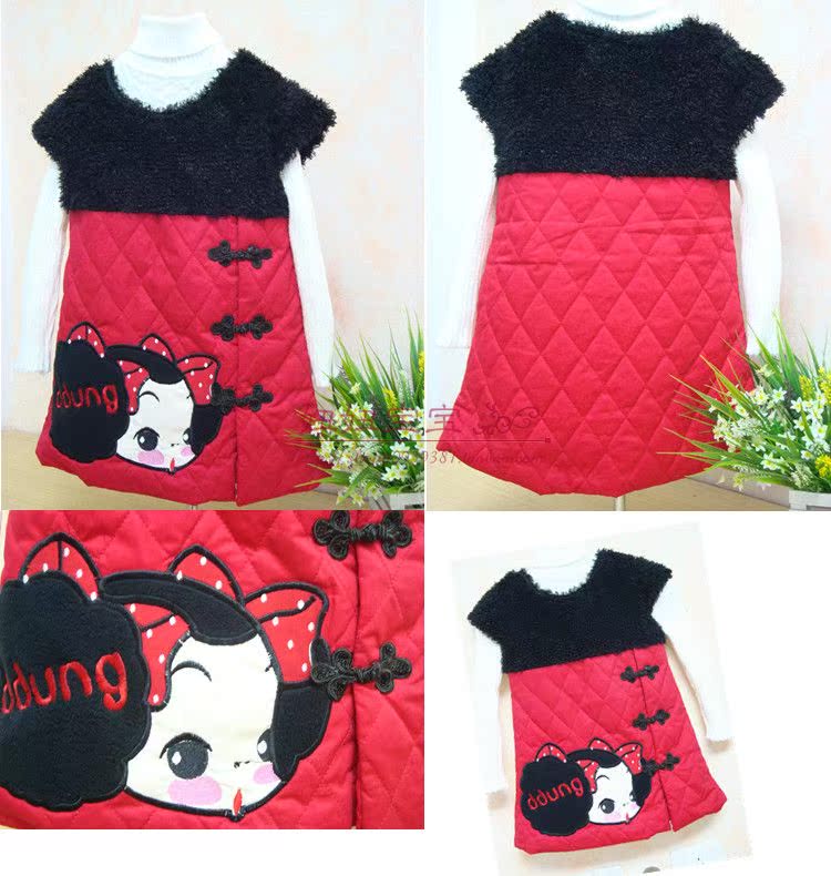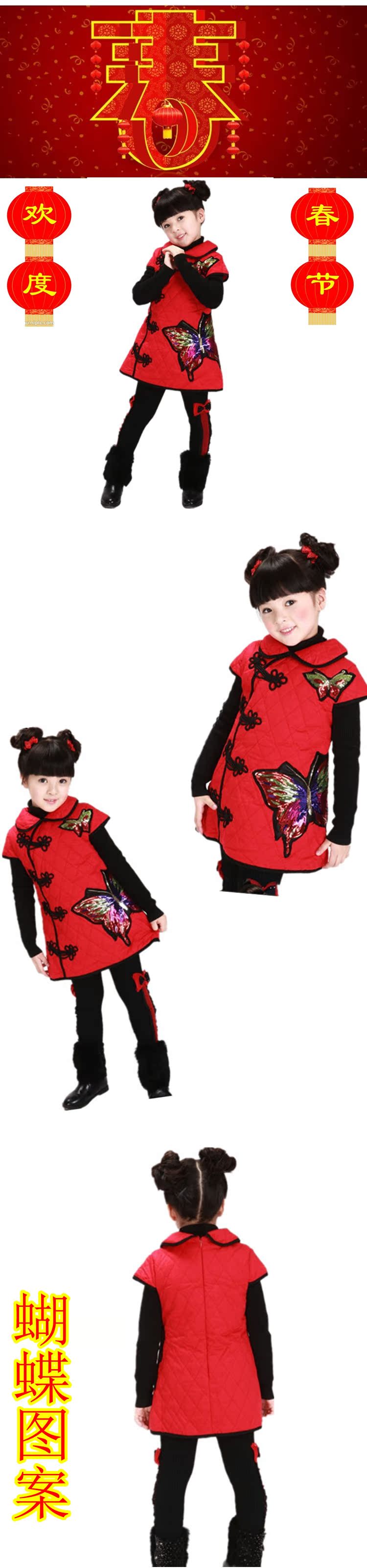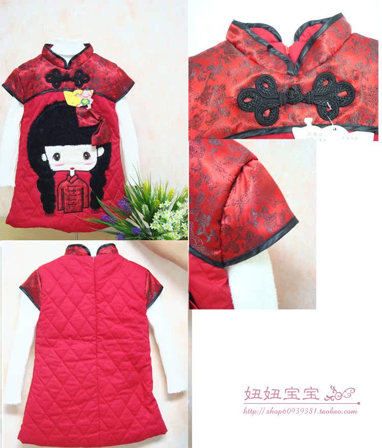 童裝女童2012冬新款精美年裝演出服夾棉棉衣裙兒童旗袍中國(guó)紅唐裝