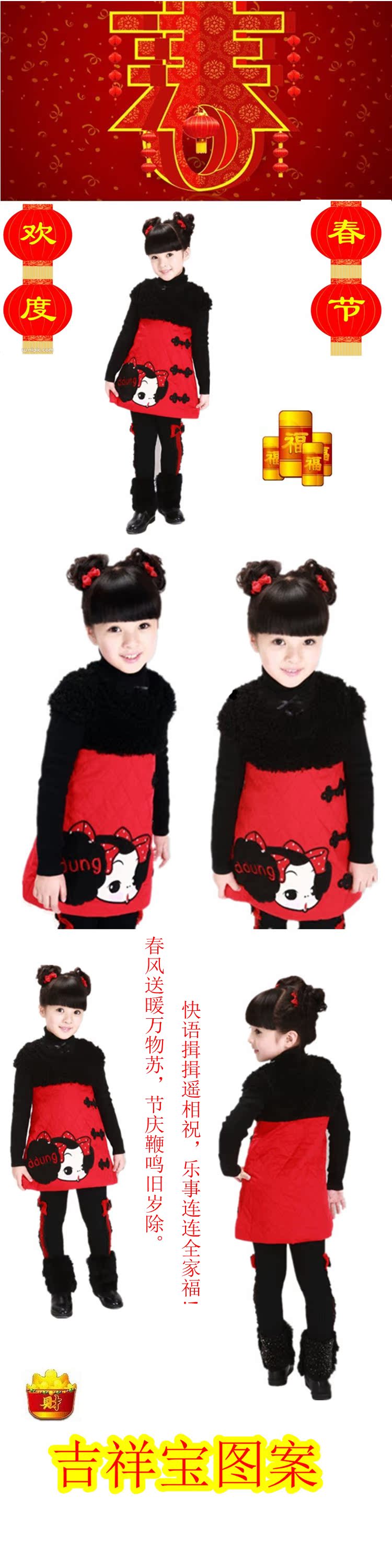 精美年裝閃亮登場(chǎng).今年的新款年裝,秉承了中國(guó)傳統(tǒng)品質(zhì)的經(jīng)典,更融入了現(xiàn)代公主的氣息,堪稱完美版!為了滿足寶寶在寒冬節(jié)日盛裝出席時(shí)既有風(fēng)度又有溫度,廠家特意為爆版紅火年裝全面升級(jí).衣衣在夾棉的同時(shí)還加了柔軟的親膚又有厚度的搖粒絨里襯,面料選用了抗靜電的高品質(zhì)精梳全棉水洗棉料,質(zhì)地細(xì)膩,光滑,而不是那咱高高的滌綸紡緞面料,這種化纖料在寒冬季節(jié)是有靜電輻射的,對(duì)寶寶身體是不利的哦!A字型版型的設(shè)計(jì)如行云流水上身修身有型,一點(diǎn)也不會(huì)顯得臃腫和緊迫感.相信這幾款中西結(jié)合的唯美版唐裝,親也會(huì)跟我們一樣愛不釋手,且總有一款適合您家寶寶哦!