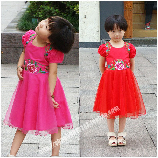 廠家直銷 新夏童裝唐裝女童復(fù)古民族古箏表演公主連衣裙批發(fā)多色