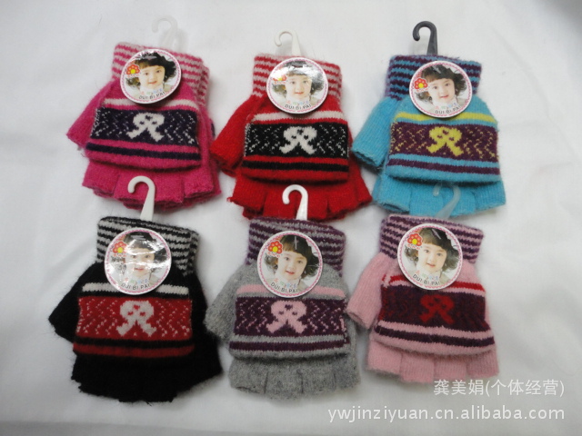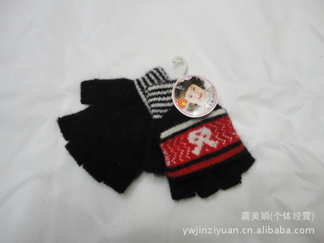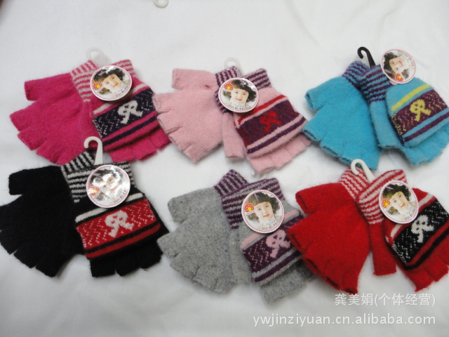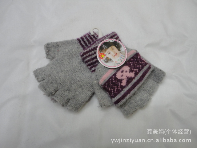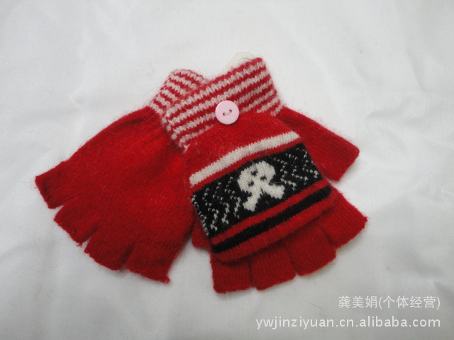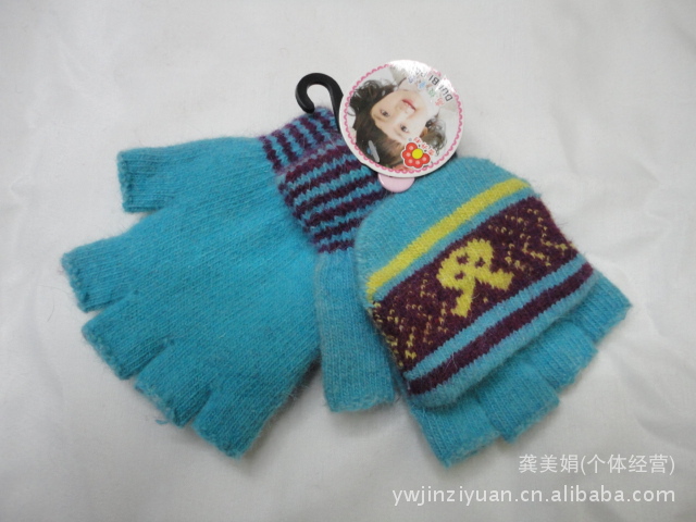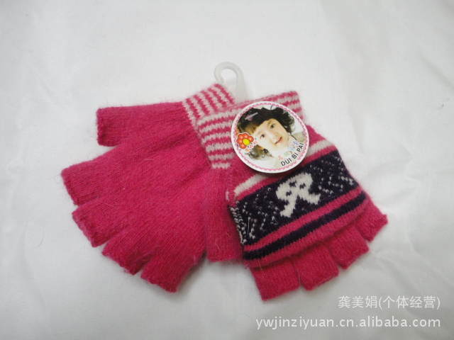 韓版時尚兔毛提花小孩半指翻蓋手套 針織手套 魔術手套
