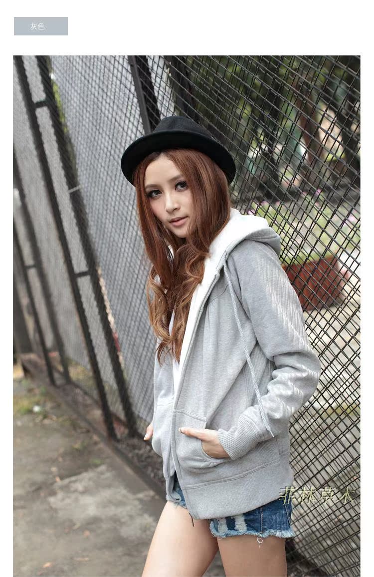 2013秋冬新款女裝休閑加厚大碼加絨保暖連帽衛(wèi)衣開(kāi)衫外套