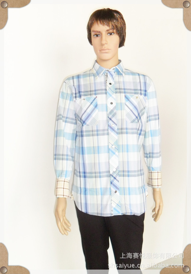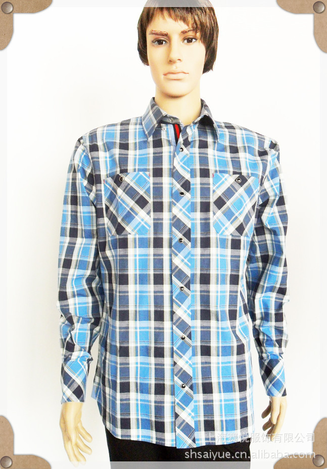 美國COOGL 供應服裝 男裝 男式襯衫 藍黑格【圖】上海賽悅