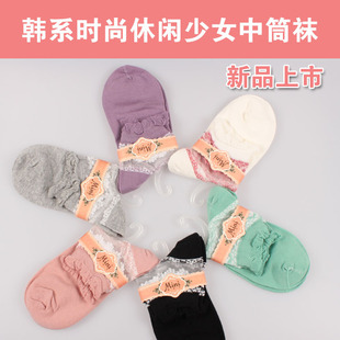 廠家批發 2013夏季新品女襪可愛蝴蝶結韓版拉毛中筒襪 長邦襪子3.15