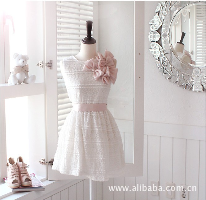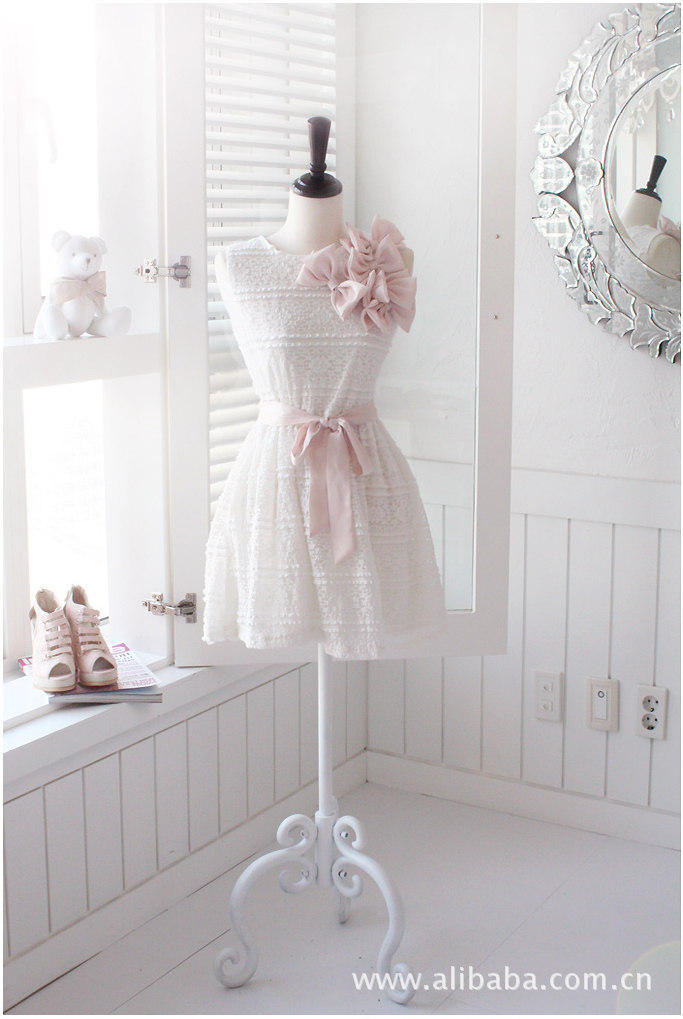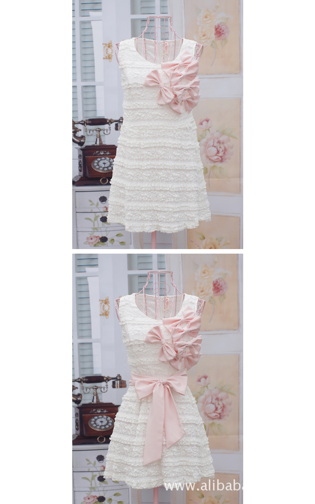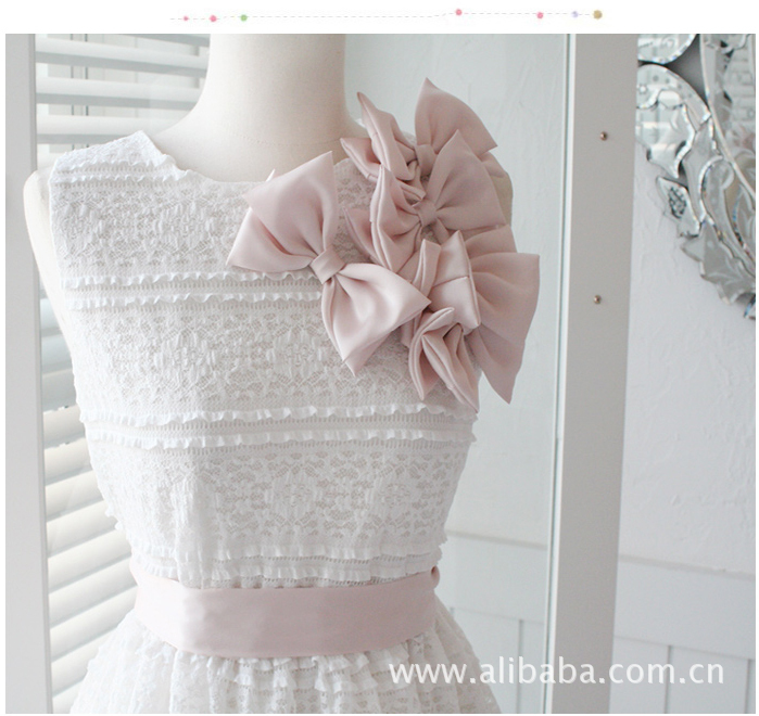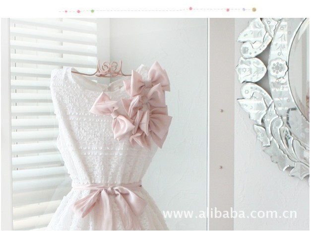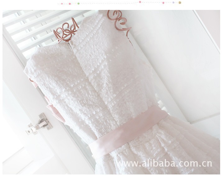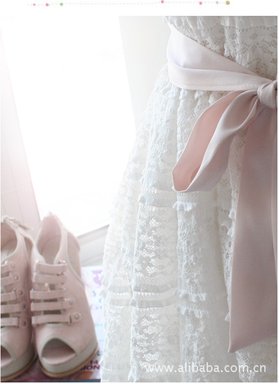 2011時尚韓版公主裙 蕾絲蝴蝶結(jié)雪紡連衣裙 (帶腰帶)