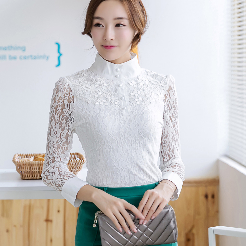 品名:黑色雪紡高領蕾絲衫型號:2621#風格:通勤OL品牌:夢惠顏色:黑色、白色面料:高檔雪紡棉規格:S M L XL XXL版型指數