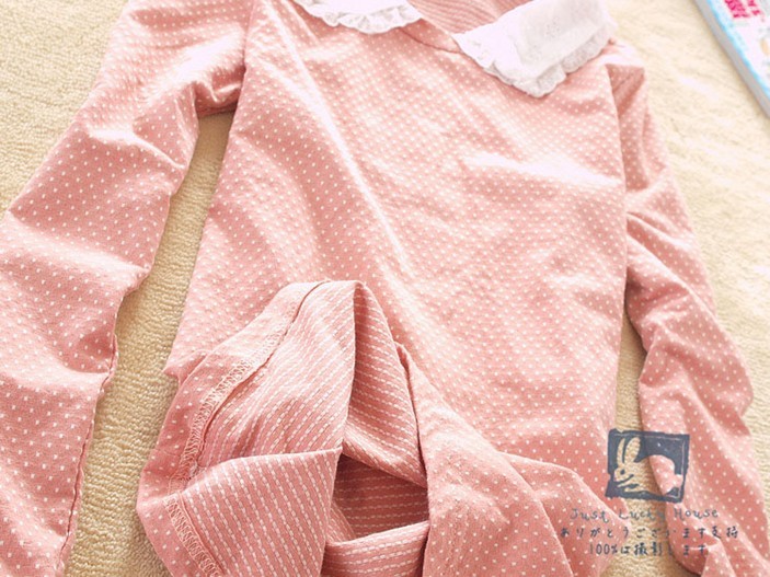1.寶貝名稱:秋季必備打底單品 海軍風翻領圓點點棉長袖Tee粉色