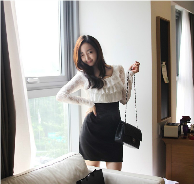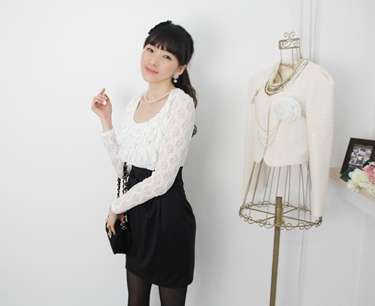 又是一款嫵媚小女人的連衣裙。誘人的蕾絲加上嫵媚的小包裙更是能顯示出女婀娜多姿的曲線。小包裙上大大的蝴蝶結更適宜的表露出可愛小女人的姿態。呢料包裙哦。 S M兩個碼數。親們穿上她,搖身化作性感嫵媚可愛的小魔女吧