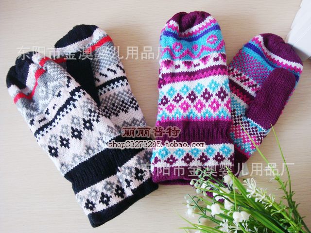 冬季保暖加厚款 針織毛線手套 連指毛絨手套 保暖手套