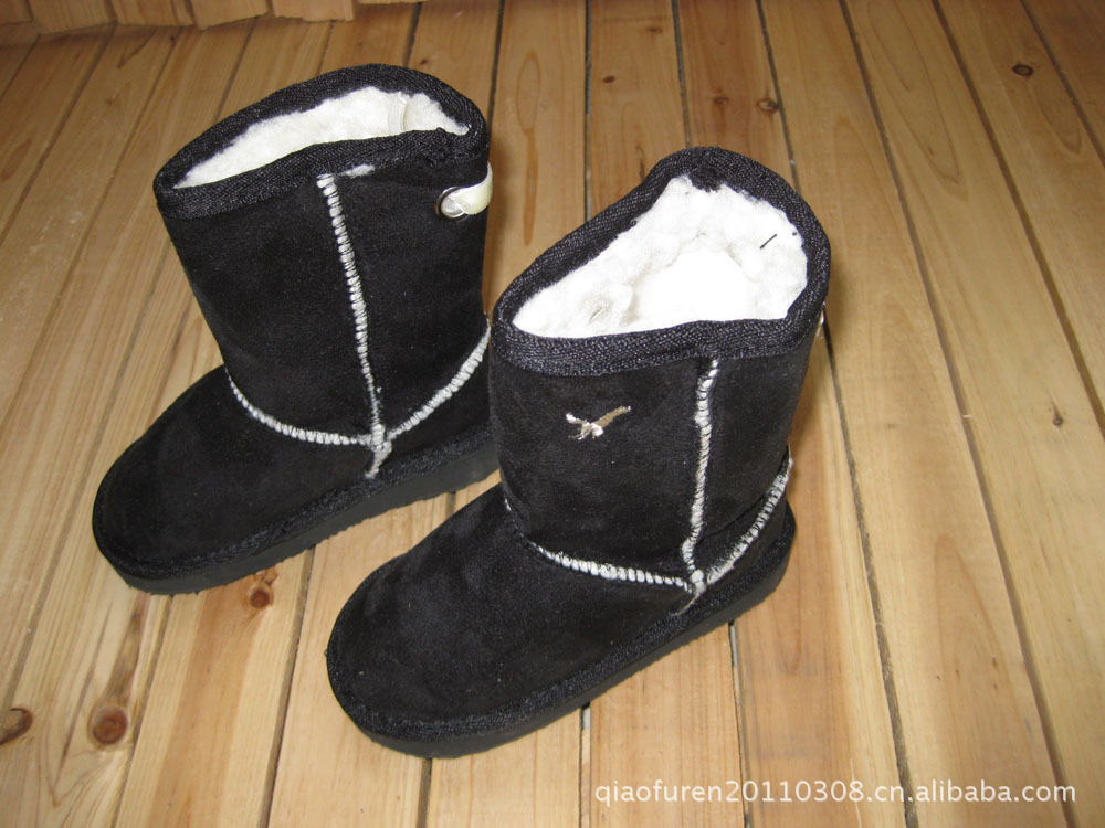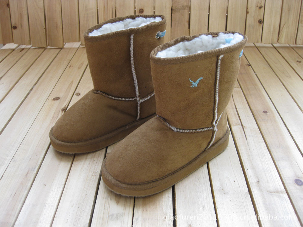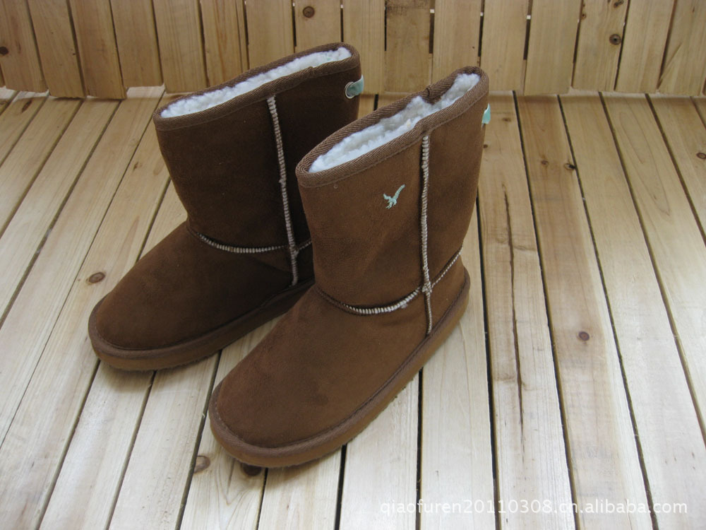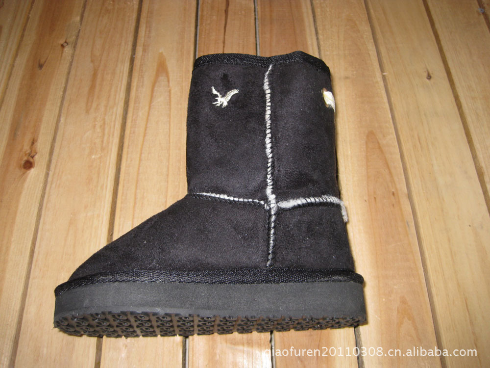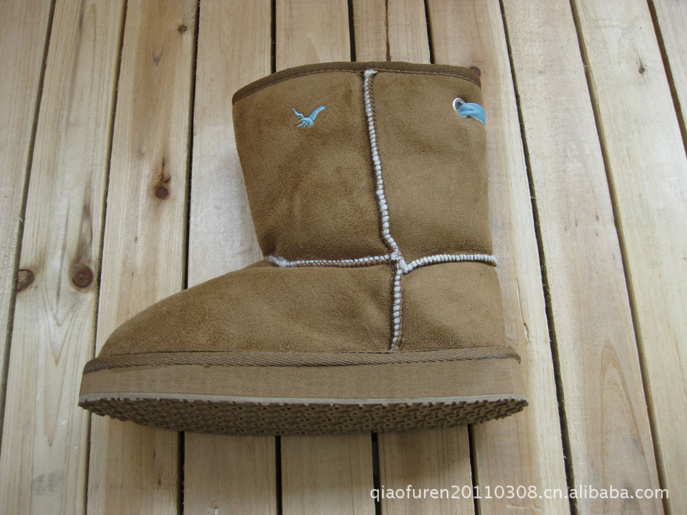 時尚 駝色 麂皮絨繡老鷹雪地童靴