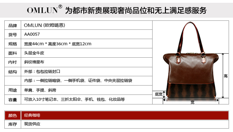 歐姆璐恩OMLUN 時尚定律 2013歐美時尚新款休閑品質牛皮條紋單肩