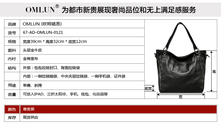 歐姆璐恩OMLUN 領域空靈 2013韓版百搭全真牛皮單肩斜挎女包