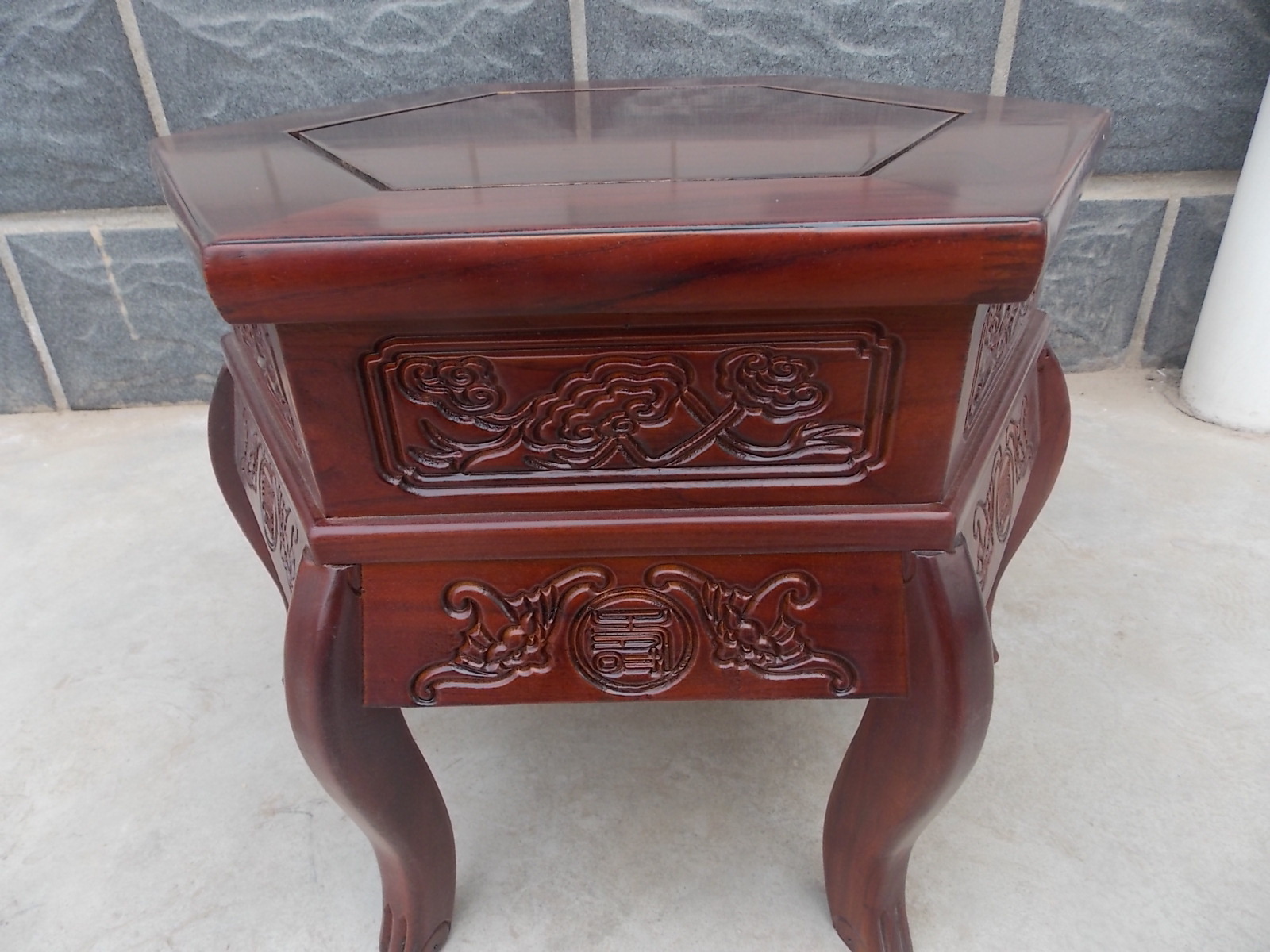 精雕細琢,采用傳統榫卯工藝,結實穩固,長久耐用,油漆為行業高端嘉寶莉健康環保木器漆,純手工打磨而出。花架面采用特殊工藝,突破傳統,采用可移動面心,可以有效防止伸縮變形!