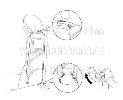 產品上端帶有可調節松緊的可撕拉魔術布貼,固定在頭枕一頭與座椅結合處即可,下端自備一根棉繩,系在座椅底合適位置即可。