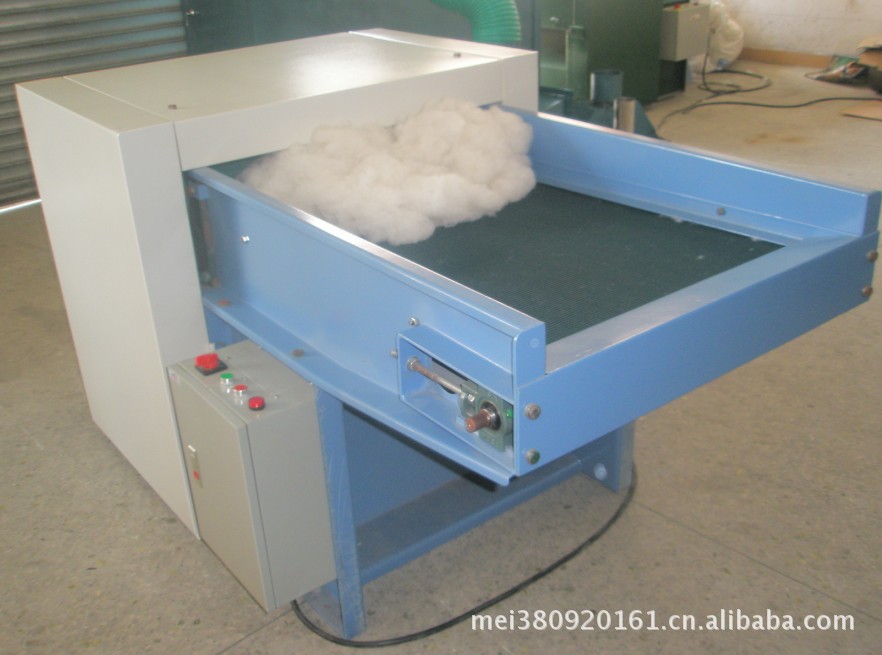 我公司生產的松棉充棉一體機,是我公司科研人員專門針對枕頭.靠背.沙發.坐墊.大件玩具等需要填充纖維棉的產品而研發的.其優點是松棉充棉功能于一體,梳棉填充一次性完成,填充速度快,操作簡單,一至兩人操作即可完成,只需把原棉放到機器輸送帶上就能自動送棉入機,保障操作人員的安全,而且填充出來的棉花蓬松,富有彈性,產品外表平整,效果更理想,節約用棉量.克服了國內其它廠家生產的機器填充出來的棉花會結成粒狀.及增加用棉量等缺點.不論長纖維棉或是短纖維棉.半硅棉或是全硅棉都適合本機使用,這樣客戶選擇原材料的范圍更廣,大大的提高生產效率,降低生產成本,提高產品的競爭力.全機采用高溫烤漆,不易生銹.