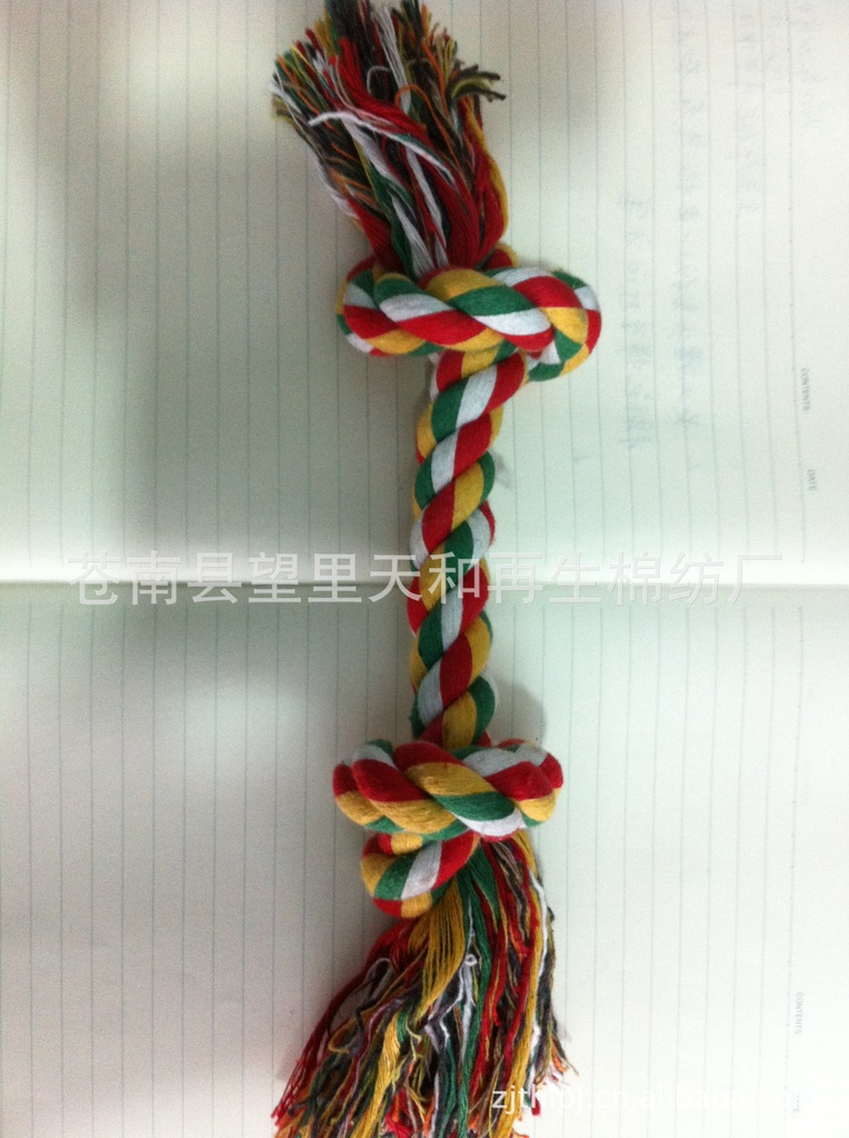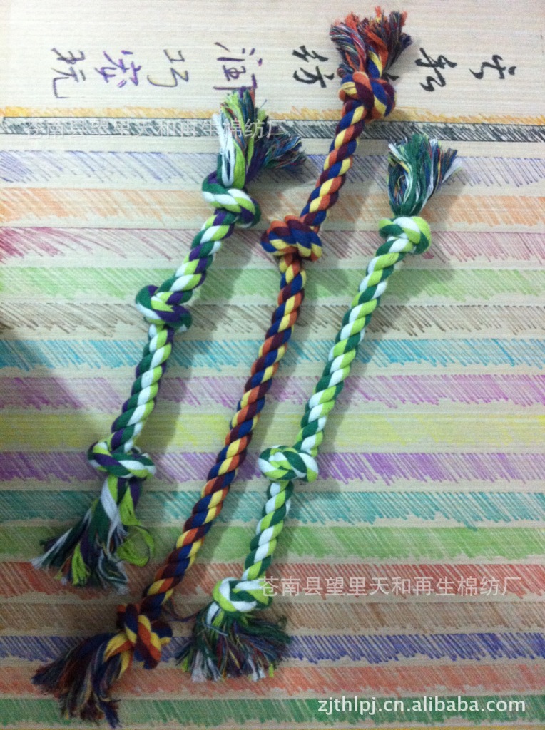 彩色棉繩制成,不易被寵物咬開(kāi),可以避免寵物撕咬電線、家具等,也可以讓愛(ài)犬和主人來(lái)回拉動(dòng)玩,以增進(jìn)主人和狗狗的感情。也可以讓狗狗自己咬著玩,是愛(ài)犬的潔牙,磨牙,娛樂(lè)的哦.