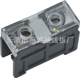 IN引進型端子,殼體采用熱固性塑料或DMC聚酯塑料。耐高溫、抗老化、工作電壓600V,工作電流分:20A、30A、50A、60A、90A、130A、240A。連接導線截面0.75-100mm2。大電流導電板壓接螺絲采用雙用型,同時上面均加蓋聚酯透明防塵蓋,安全可靠。