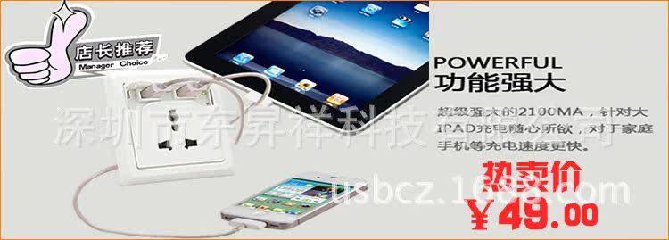 1,創造性地將普通電源插座與USB直流供電插座組合,省去攜帶USB充電器或用電腦USB供電的煩惱。