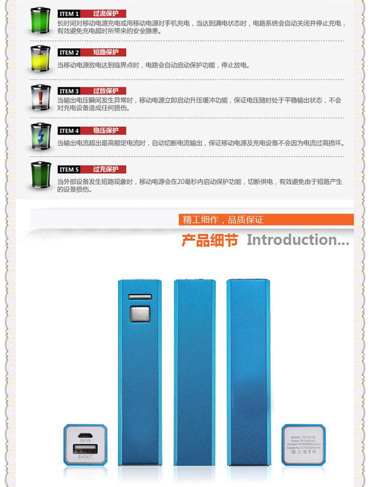 5、適用廣泛:適用各種機型手機,更換不同連接線還可給MP3、MP4、數碼相機等數碼產品實現應急充電。