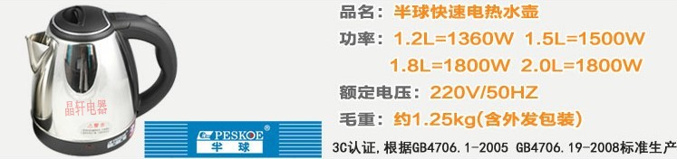 鋼蓋半球不銹鋼1.8L電熱水壺/快速電水壺/電熱壺/大量批發