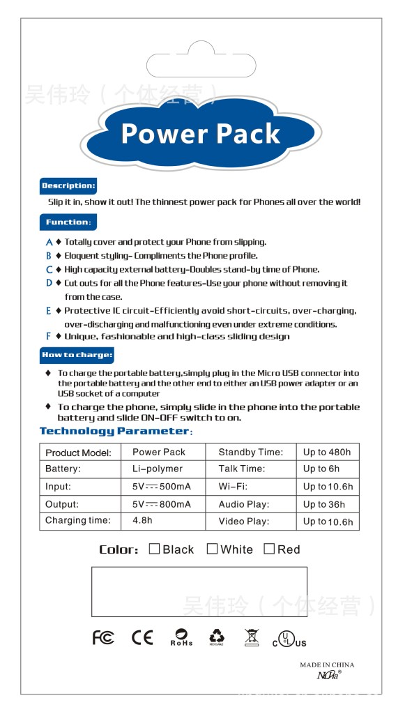 作為蘋果的新一代旗艦手機iPhone5一上市便得到廣大人們的青睞,其強大的功能與出色的性能讓其他手機汗顏,也是讓人們狂熱追求的重要因素,不過不能更換電池成為了iPhone5續航的一個無法避免的痛,為了讓我們的愛機擁有更強大的,更持久的續航能力,我們在時間研發了這款iPhone5專用背夾電池(充電寶,保護殼,電影支架三合一);容量為2000mAh您可以為您的愛機配上它;讓您長時間的上網、聽歌、看視頻等,商務和娛樂都無后顧之憂。