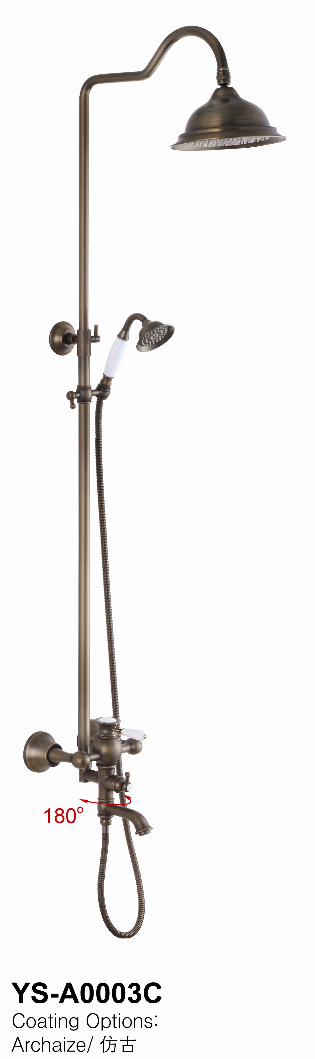 此款淋浴仿古主體(包含頂噴花灑、手持花灑、淋浴問號管,配件)
