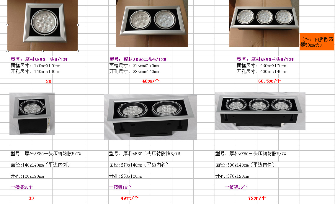 發光面22MM 發光角度25° 45° 60° 面經275*145 開孔255*125MM